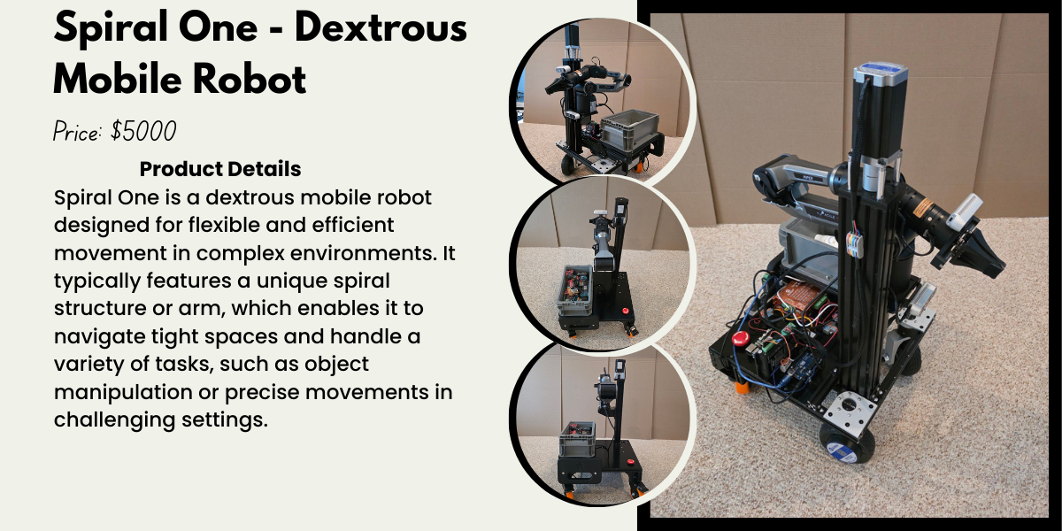 Spiral One’s robotic arms offer multiple degrees of freedom (DOF), mimicking the human arm’s range of motion. It can: